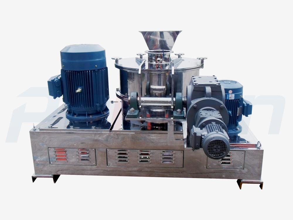 產品簡介: 雙軸機械粉碎機工作運轉中物料由加料系統均勻的送入粉碎室受到高速旋轉的粉碎盤的強烈沖擊,同時受到離心力的作用,與粉碎齒圈發生碰撞,受到剪切、摩擦、碰撞等多種綜合力的作用,使物料粉碎,被粉碎的物料隨氣流運動到分級區,通過變頻調節的分級輪,對粗細物料…